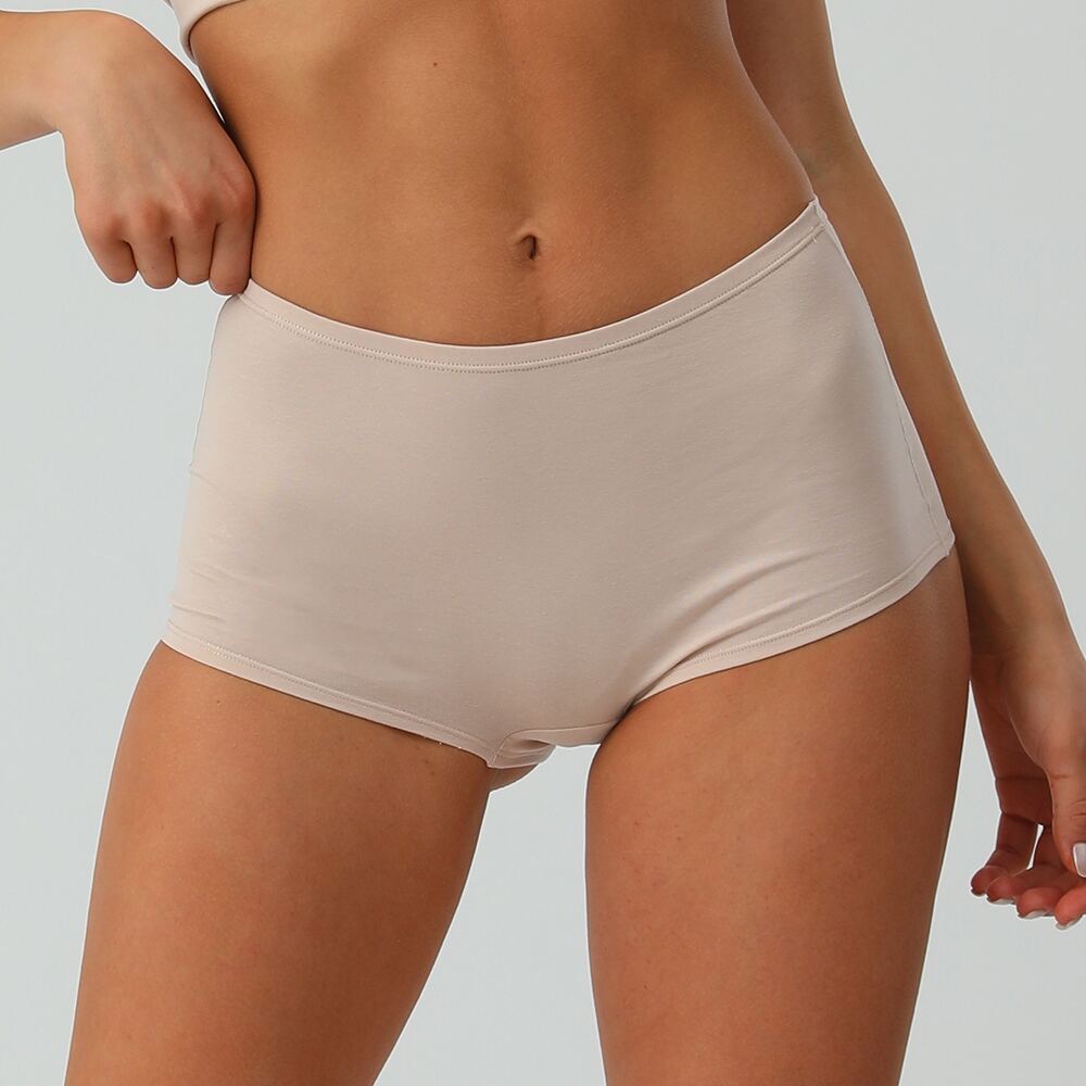 These premium boyshorts are crafted from a high-quality cotton-rich fabric blend specifically engineered to deliver an exceptionally soft and breathable feel against the skin. The advanced material composition of 95% premium combed cotton and 5% Lycra spandex creates the perfect synergy between natural comfort and functional performance. The natural cotton fibers provide gentle, non-irritating comfort and promote optimal air circulation for all-day wear, while the strategic spandex content ensures consistent stretch recovery and reliable shape retention. The fabric undergoes a special brushing process that enhances its natural softness, creating a luxuriously smooth hand feel that becomes even more comfortable with repeated wear. The moisture-wicking properties of the technical fabric help maintain a dry, comfortable microenvironment, making these boyshorts ideal for all-day wear in various climates and activity levels. The gusset is lined with pure cotton for enhanced hygiene and breathability, addressing the specific needs of intimate wear while preserving the garment's overall comfort. As experts in cotton underwear manufacturing, we've prioritized both immediate comfort and long-term durability in our material selection process.