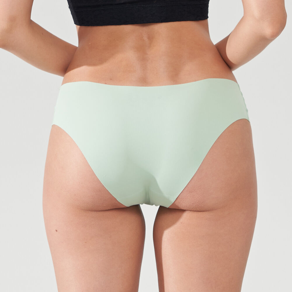The waistband and leg openings are finished using advanced laser-cut technology, creating clean, raw edges that lie flat against the skin. This eliminates the bulk commonly caused by elastic bands or folded hems, ensuring the panty remains invisible from every angle.