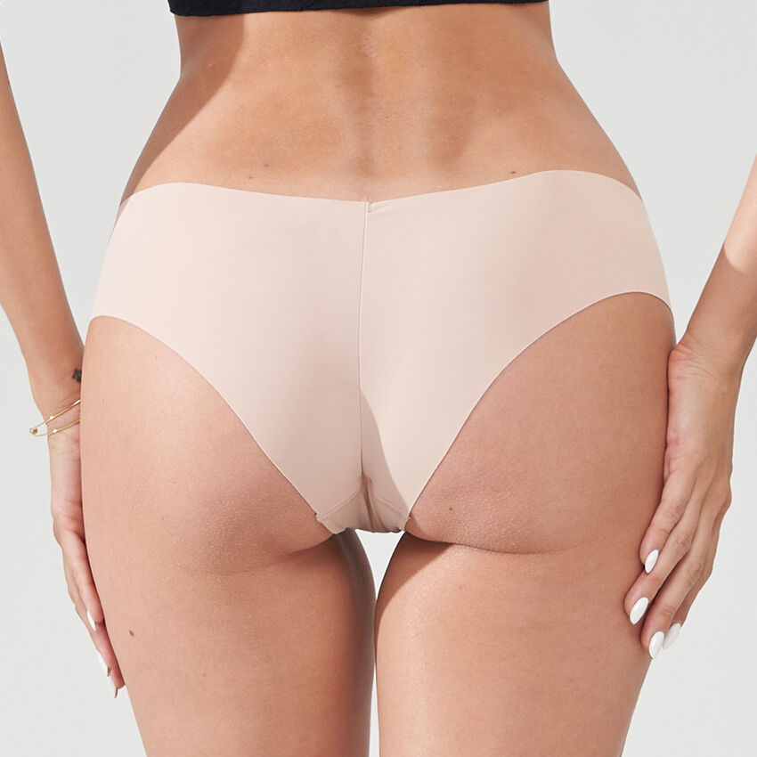 Unlike one-piece back panels commonly found in low-cost seamless underwear, this Brazilian brief features a two-piece rear panel construction, carefully stitched to follow the natural curvature of the hips and glutes.