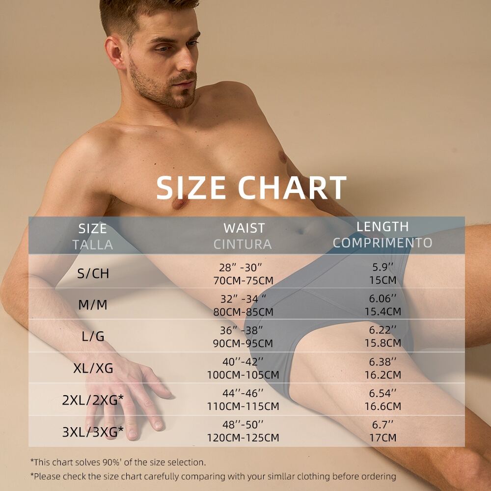 These men’s briefs are available in an inclusive size range, including sizes up to 3XL. The stretch fabric and carefully engineered pattern ensure a comfortable fit across different body types. Each size is designed to provide consistent support and comfort without feeling tight or restrictive.